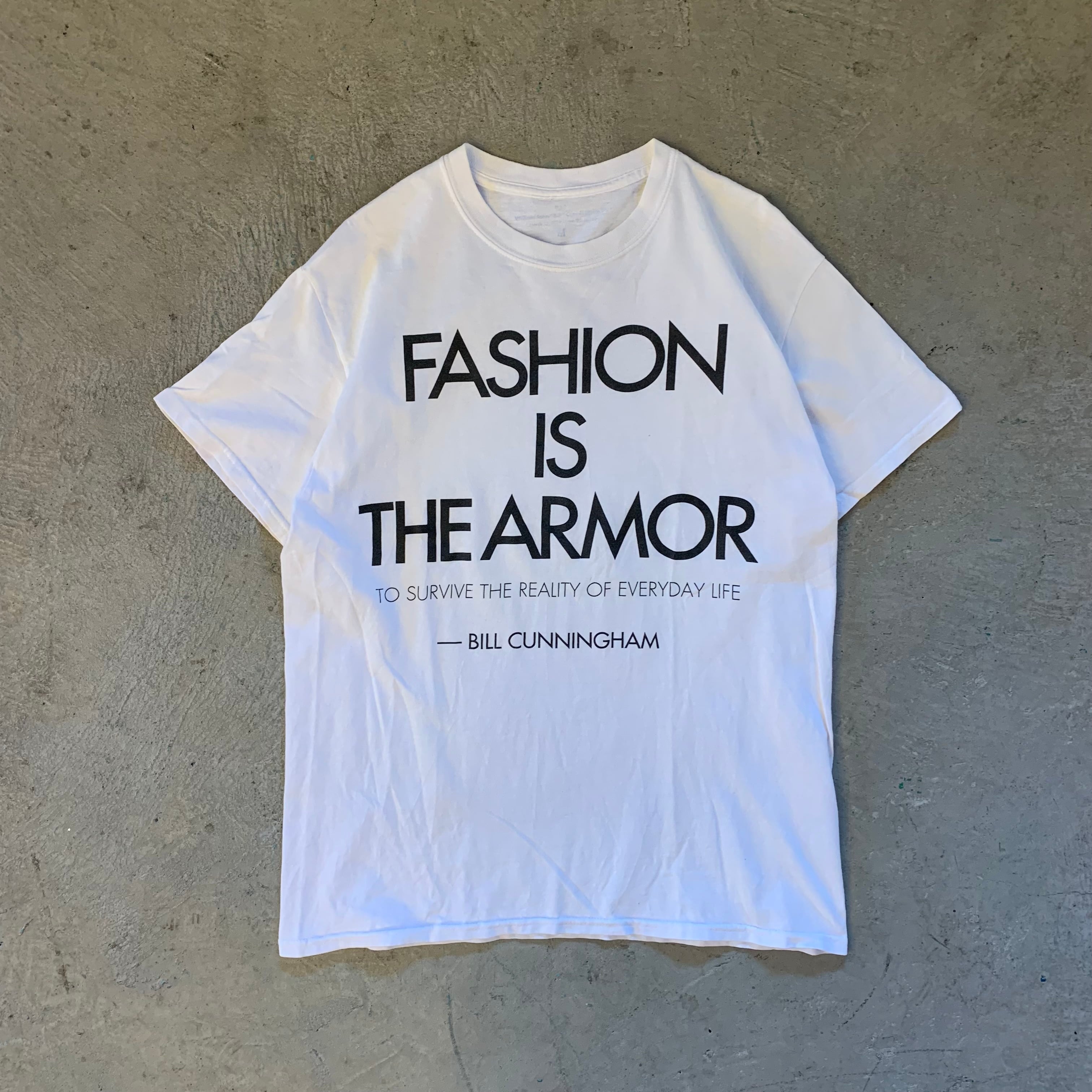 伝説のフォトグラファー、ビル・カニンガムが遺した、ファッション史に残る名言をフロントに配した一着。
